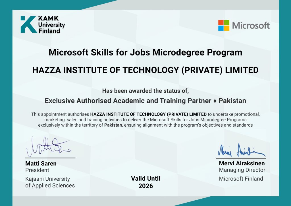 You will learn through high-quality courses jointly developed by Microsoft, in partnership with KAMK University of Applied Sciences (Finland), leading EU universities and global tech companies (GTC). The courses follow the European Credit Transfer and Accumulation System (ECTS), meaning your credits and certificates are internationally recognized for quality international and local jobs and higher studies in EU countries.